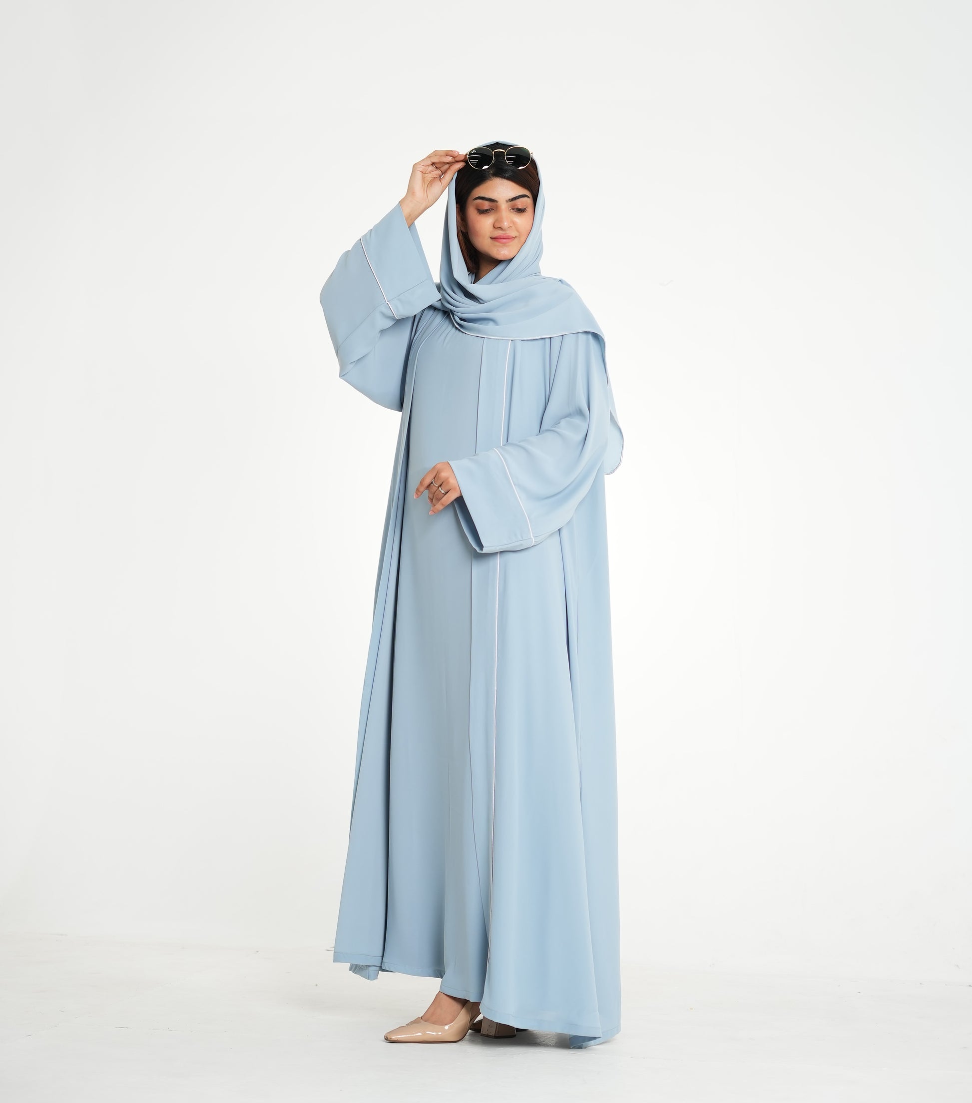 Soft, serene, and effortlessly graceful — Sky Serenity is a 2-piece modest wear set crafted in a refreshing light sky blue tone. Made from premium Korean Silk Georgette, this outfit includes a flowy upper layer with subtle elegance, paired with a breathable and modest inner slip.